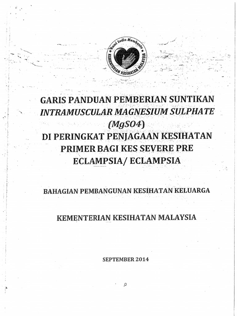 2014 Garis Panduan Pemberian Suntikan Im Mgso4 Di Peringkat Penjagaan Kesihatan Primer Bg Kes Severe Pre Eclampsia Atau Eclampsia Pdf Pdf